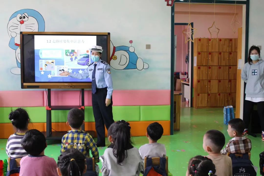 宣传民警结合幼儿园小朋友们的出行规律特点,用通俗易懂的语言给孩子们详细讲解如何认识交通标识标志、如何安全乘车、如何安全过马路等交通安全常识,在寓教于乐的活动中给孩子们传播交通安全知识,让孩子们懂得交通安全的重要性。