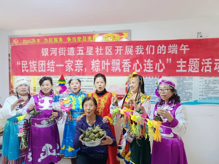 活动期间,五星社区汇集辖区各民族兄弟姐妹,身着节日盛装,热热闹闹一起包粽子;温馨社区始终关心下一代少年儿童成长,将各民族儿童聚集在一起一起叠葫芦、画风筝;银河社区组织辖区各民族居民代表一起踏青,采摘艾草,情至浓时大家一起载歌载舞,传颂党的光荣历史,歌唱党的丰功伟绩。展现了社区各民族相互融合发展的风貌,促进了各民族文化交流,增进了民族团结。