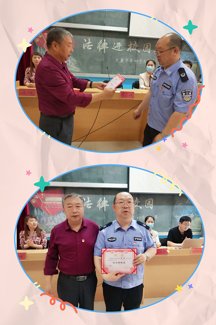 活动第二项,聘请红岗区司法局聘请红岗区司法局副局长雷霆任47中学法治副校长。法治副校长雷霆将在学校内定期对学生从事法治教育宣传,指导学校开展依法治校工作。