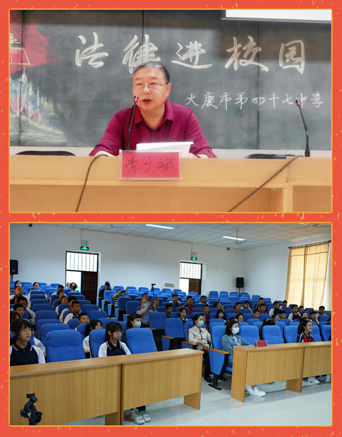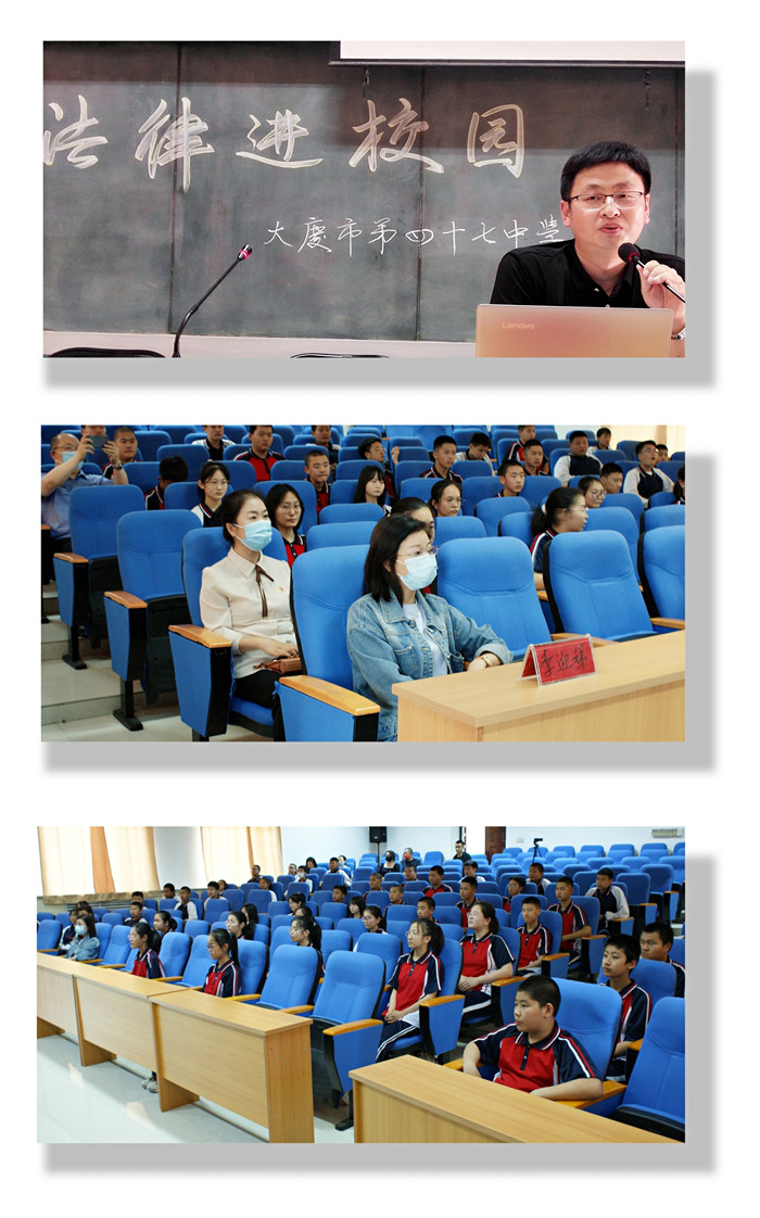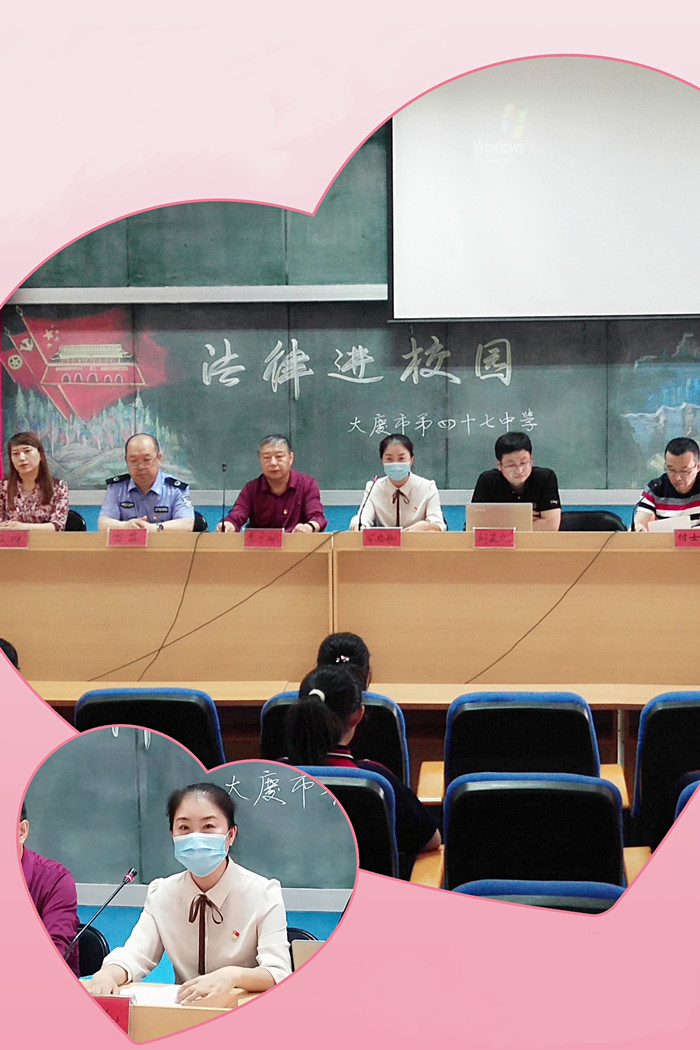 为普及法律知识,提高未成年人自我防范意识,6月15日下午,大庆市红岗区关工委联合区司法局、区创业街道司法所走进四十七中学,组织开展学生法治安全宣传教育活动。红岗区关工委秘书长、办公室主任宋晓艳,四十七中学校长邵洪福,四十七中学书记李广斌,司法局副局长雷霆,区创业街道司法所所长李迎娣,区司法局法宣科科长汪坤等出席活动,法治安全教育讲座由刘爱文律师主讲。