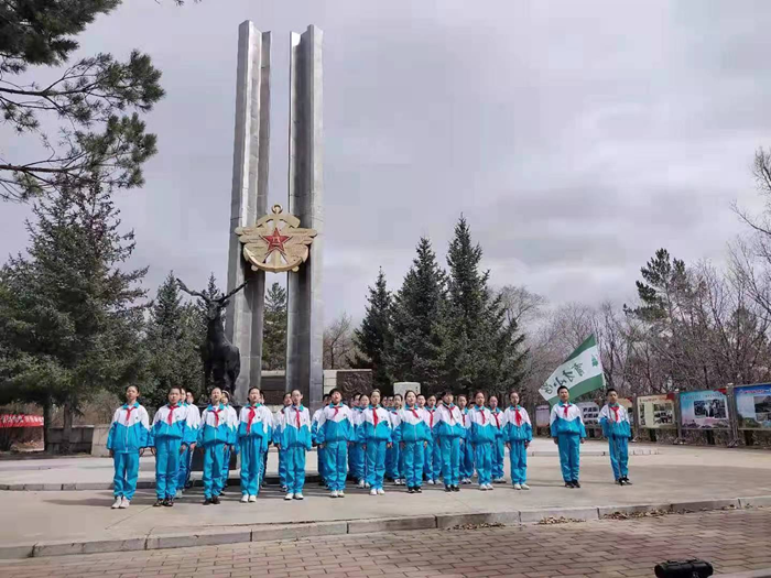 加格达奇区育才小学组织学生在加格达奇铁道兵纪念碑进行爱国主义教育和大兴安岭精神教育
