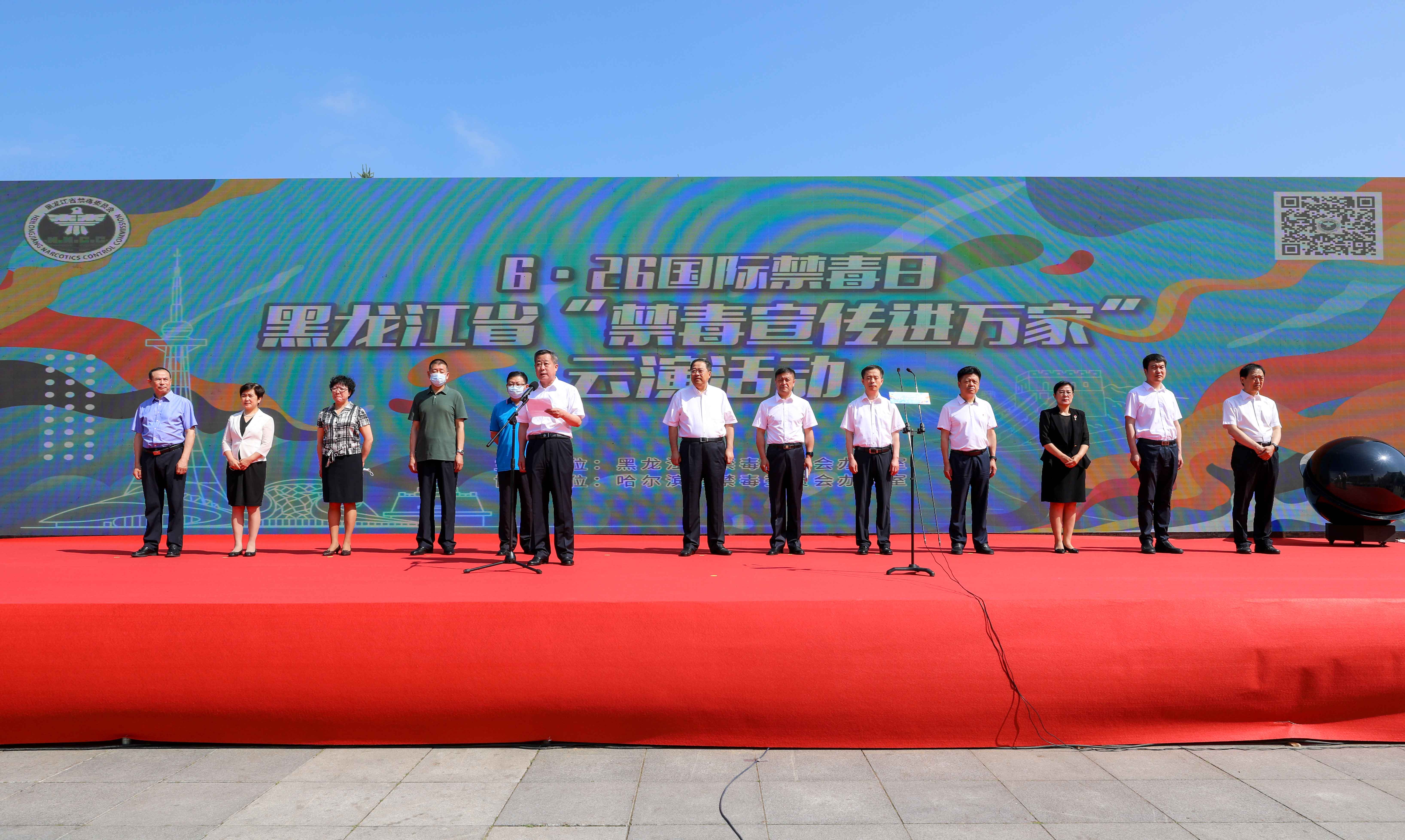6月26日,我省及哈尔滨市禁毒办在哈尔滨市中央大街,举行黑龙江省“6·26”国际禁毒日35周年纪念活动暨“禁毒宣传进万家”哈尔滨站云演活动。