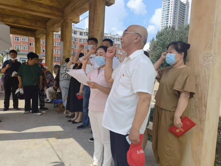 党旗下,全体党员在乐老的带领下,郑重地举起右手,庄严宣誓。为庆祝中国共产党建党101周年,开展的主题党日活动,画上圆满的句号,留下永恒的记忆:“为共产主义事业奋斗终身”!