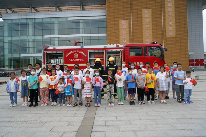 在文体中心广场,学生、家长们现场观看了消防车、随车器材和消防员防护服,学习了它们的结构和功能,了解了消防员车的而魅力,加深了对消防员的崇高敬意。青少年们纷纷与消防车、消防员合影留念,达到了消防安全意识入脑入心的效果。