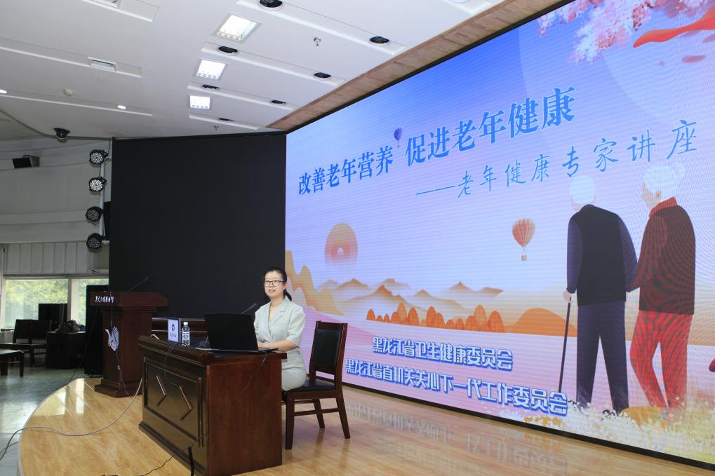为深入贯彻《中共黑龙江省委 黑龙江省人民政府关于加强新时代老龄工作的实施意见》,积极推进《黑龙江省“十四五”健康老龄化规划》,践行“为老年群体办实事”宗旨,2022年7月2日,省直关工委和省卫健委老龄处联合黑龙江省医院,在黑龙江省图书馆报告厅举办了“改善老年营养,促进老年健康”讲座及义诊活动。黑龙江省医院纪委书记、老年病医院院长商晓英,中西医结合康复医疗中心主任刘延东,康复科副主任医师王杨,临床营养科主任李雨泽,临床营养科鲍金华、张堃等参加活动。