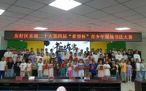 为丰富全区青少年暑假生活,继承弘扬中华民族优秀传统文化,提升青少年的审美能力和人文素养,培养青少年对书法类传统文化的兴趣,激发其艺术想象力和创造力,2022年8月12日,由区关工委主办,区青少年活动中心、友好区明会书法学校承办的友好区第四届“希望杯”青少年现场书法比赛在区青少年活动中心举行。区关工委常务主任国家富、秘书长张大翔、区关工委成员及区委宣传部、区工会、区团委、区妇联、区教育局、记者站、区青少年活动中心、明会书法学校的相关领导参加了此次活动。