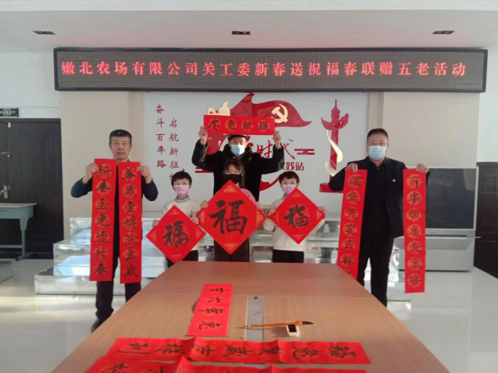 新春将至,为了营造安定、祥和、喜庆的春节气氛,日前,嫩北农场关工委在双老中心ー楼大厅开展学习党的二十大精神,“新春送祝福 春联赠五老”春联书写活动,农场关工委领导、五老代表、小学生10人参加了活动。