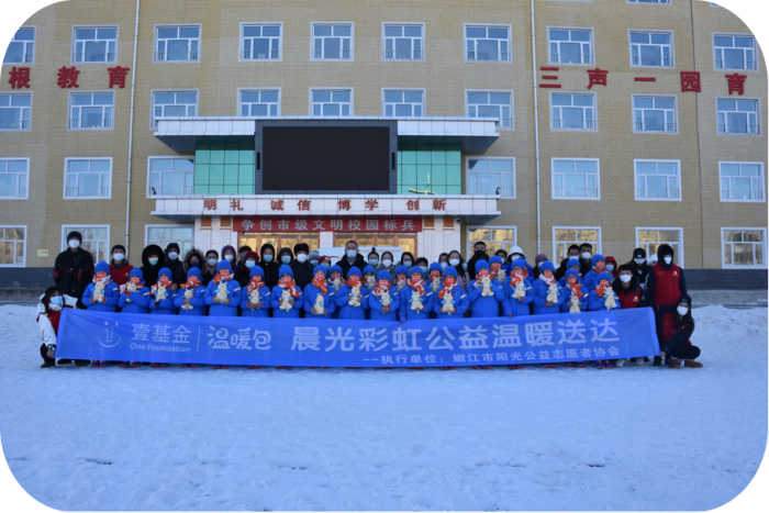 陈彬的带领下走进嫩江市第四小学校,为32名家庭困难的小学生发放节日礼物---“壹基金·温暖包”,总价值11680.00元。并为孩子们送来了新春佳节的问候和祝福。