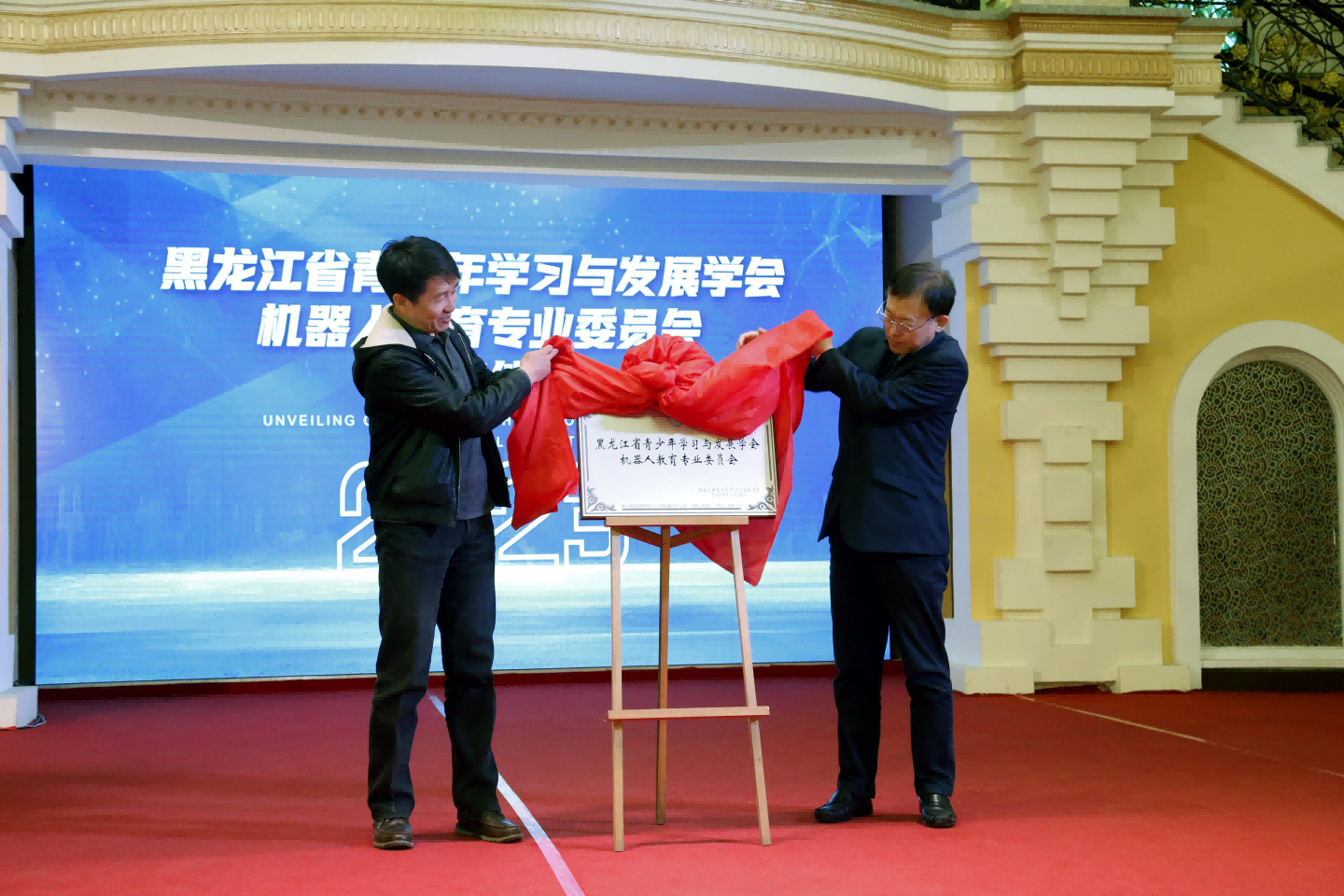 在论坛上,还举行了黑龙江省青少年学习与发展学会机器人教育专业委员会揭牌仪式,学会会长李峰、学会机器人教育专业委员会理事长白相林共同为专委会揭牌。论坛结束后,与会人员参观游览了美丽的伏尔加庄园。