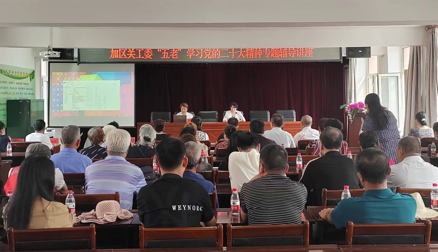 为深入学习宣传贯彻党的二十大精神,切实把思想和行动统一到党的二十大精神上来,7月14日下午,加区关工委举办“五老”学习党的二十大精神专题辅导讲座。区关工委全体工作人员,两乡、两镇、四个街道、教育关工委常务副主任和“五老”代表50余人参加专题辅导学习。