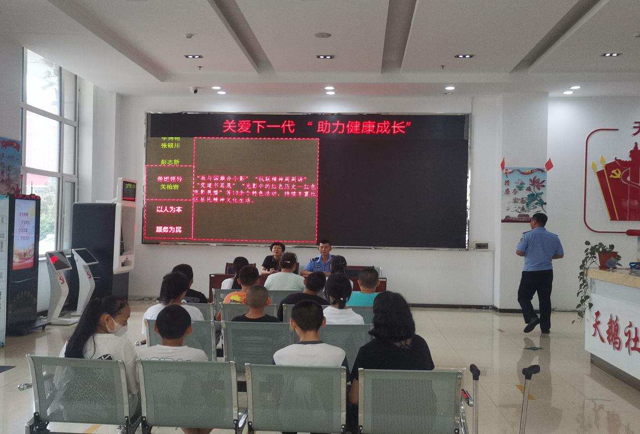 7月24—27日,天鹅社区、国土社区、阳光社区、福康社区等关工小组,邀请辖区派出所和退役军人、老党员等“五老”分别举办“关爱下一代,助力健康成长”“遵守交通法规·平安与你同在”等暑期安全讲座,用通俗易懂的语言讲解了防溺水、交通安全等方面知识,增强了青少年的安全意识,提高了自我防护能力和自我保护意识。