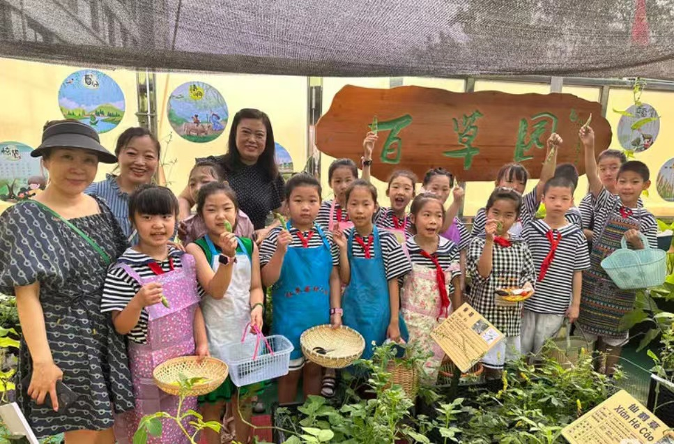 来到“百草园”劳动实践基地,这里就像一个百宝箱一样,蔬菜家族以其色彩斑斓、形态各异、营养丰富的特点深受孩子们的青睐。孩子们很快融入环境,在劳动实践基地里摘新鲜的菜宝宝,像极了基地小主人。