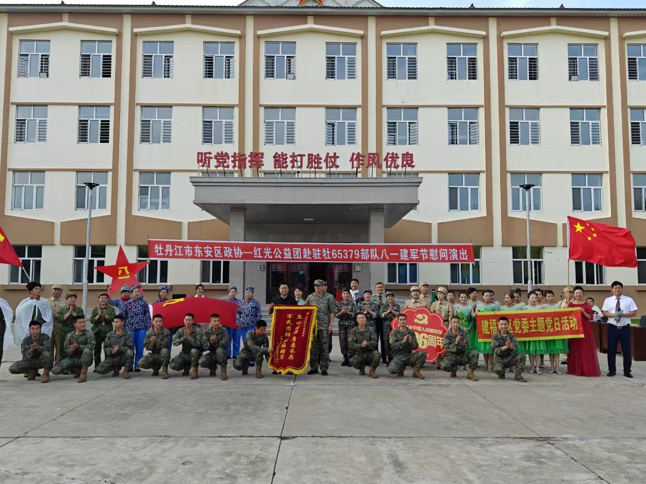 为纪念中国人民解放军建军96周年,铭记光辉历史,继续发扬双拥共建的优良传统,7月30日,牡丹江市东安区关工委“特邀成员单位”--区政协,联合五星街道建福社区组织红光老干部公益团走进驻牡部队开展庆“八一”建军节文艺汇演慰问活动。