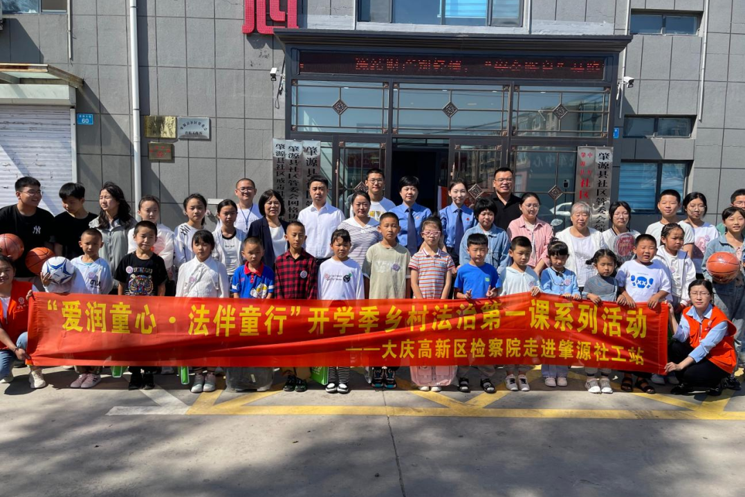 为贯彻落实习近平总书记关于“坚持法治教育从娃娃抓起”的重要工作指示,扎实推进法治教育向乡村地区延伸,9月3日,大庆高新区检察院联合肇源县关工委、民政局、社区管委会、家庭教育志愿者协会、城北社工站等单位,开展了“爱润童心·法伴童行”开学季乡村法治第一课活动。