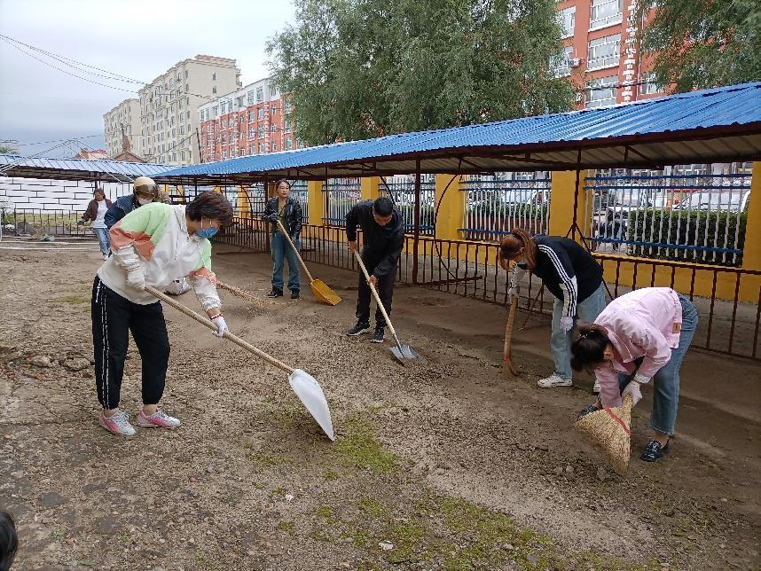 有的家长也主动加入到火热的劳动之中,老师、学生、家长共同劳动,无形之中对学生起到了示范引领的作用:孩子们在烈日之下拔除杂草,铲除垃圾,他们不怕日晒,不怕手脏,没人叫苦,没人退缩,劳动中的孩子最美丽,最可爱,最质朴。
