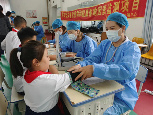 为做好东安区2023年学生常见病和健康影响因素监测,掌握儿童青少年近视、肥胖和脊柱弯曲异常等主要常见病情况和影响健康的主要因素,组织实施有效干预措施,扎实做好关心下一代工作,切实保障儿童青少年健康,牡丹江市东安区关工委成员单位--区疾控中心,结合区情实际,自9月21日起,利用三天时间,先行完成2家幼儿园、2家小学1319名孩子的现场体检工作。