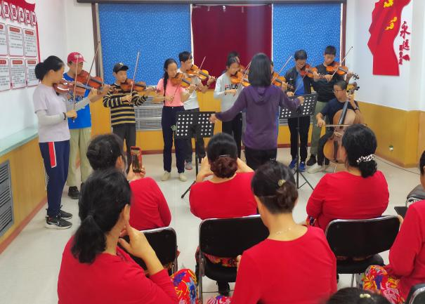 活动中,同学们为农场的老年人表演了丰富多彩的文艺节目。有独唱《童心向党》、《我为爷爷打月饼》,架子鼓表演《梦想家》、《鼓舞中国》,京胡独奏《都有一颗红亮的心》,器乐合奏《北大荒人的歌》等。