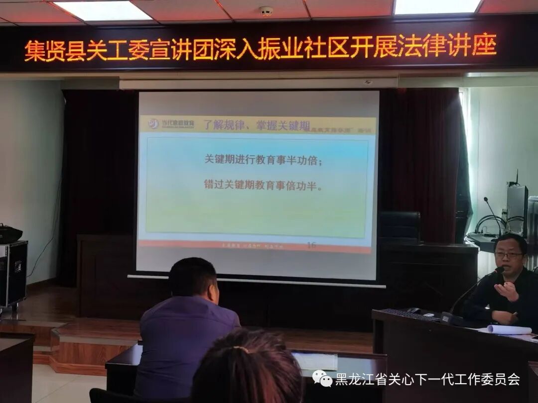 通过此次活动,进一步扩大了《家庭教育促进法》的社会知晓度,推动了《家庭教育促进法》走进千家万户,提高了家长对家庭教育的认识。接下来,集贤县关工委将联合辖域内社区进一步创新工作机制,整合优势资源,充分发挥家校社区教育合力,为促进未成年人健康成长、增进家庭幸福和社会和谐贡献应有的力量。此次活动得到了社区领导的高度重视,社区领导和关工委常务主任夏远方、秘书长陈志民等一同详听了讲座。