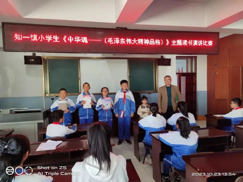 为纪念毛泽东同志诞辰130周年,10月23日,知一镇小学举行了小学生“中华魂”(毛泽东伟大精神品格)主题读书演讲比赛。知一镇政府关工委常务副主任徐绍廷,知一镇小学关工委主任霍刚等相关校领导出席活动。