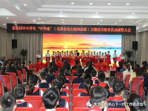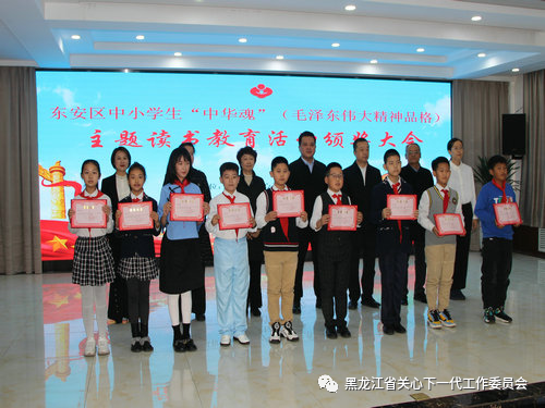 10月26日,牡丹江市东安区召开中小学生“ 中华魂”(毛泽东伟大精神品格)主题读书教育活动颁奖大会。区委常委、组织部长、统战部长褚磊,区政府副区长梁光玉,区关工委常务主任鲍丽娟及区委宣传部、区教育局、团区委有关领导出席并颁奖。区关工委副主任李刚宣读表彰决定。