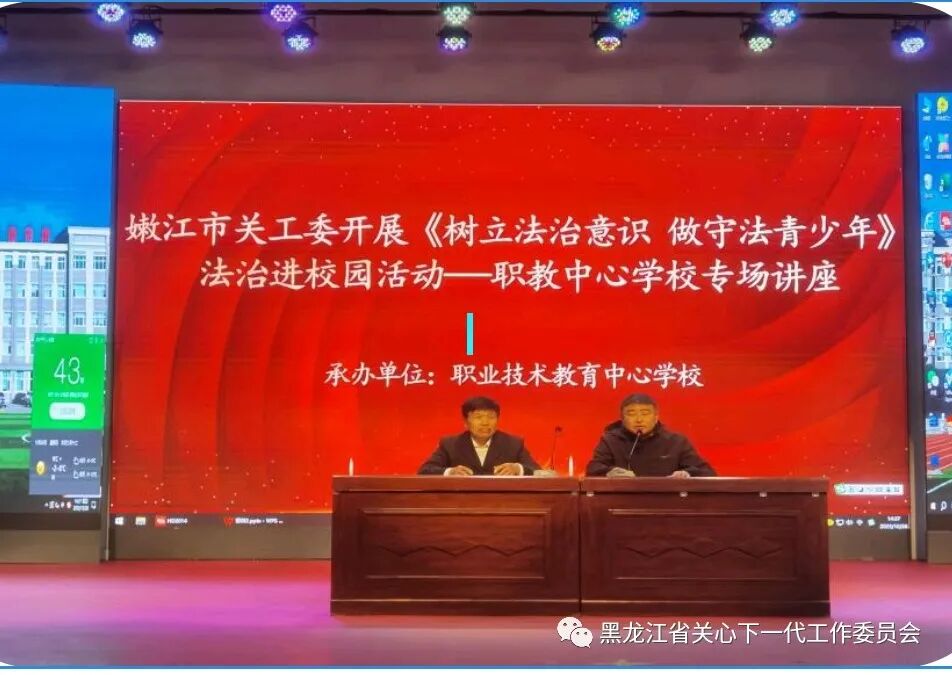 为进一步推进青少年法治宣传教育,护航学生健康成长,预防和减少校园暴力事件的发生, 10月26日下午,嫩江市关工委法治宣讲团成员刘亚杰走进嫩江市职教中心学校,为学生们送上一堂生动的法治教育讲座,600余名师生参加了此次活动。