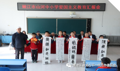 (嫩江市科洛镇“五老”丁奎为山河小学捐助书法作品)“五老”李亚坤,2020年4月,在第四小学班主任岗位上退休。退休后被正式聘为学校关工小组成员。三年多来,她结合学校工作实际,坚持走进课堂给孩子做法治、党史、家乡史等讲座。有时应班级邀请,为孩子们讲古今名人成长成才的故事,教育孩子如何做人,讲解学习知识的重要性,并和较难转化的“学困生”谈心,倾听她们的想法。留守儿童刘爽(化名)因家中变故孩子心里出现了障碍,李老师经常去她家里走走,时常帮助做些力所能及的事,解决生活中一些困难,她有时解囊相助为刘爽买学习用具、生活用品等。李老师的爱心举动打开刘爽的心结,快乐地走上学习生活。霍龙门镇关工委有着30多年党龄的“五老”王化田,把精准扶贫、困难学生救助与关工工作紧密结合起来。2020年,在精准扶贫的进程中,王化田和其他“五老”坚持对11名贫困学生和留守儿童开展献爱心送温暖,五老”们捐资助学资金达1.2万多元。2022年3月,王化田先后跑遍了全镇14个行政村的38个自然屯,,走访了10多名困境学生家庭,对所有困境儿童组织“五老”结对帮扶,确保一个不少,不仅在经济上接济,还通过思想上引导、感情上抚慰、学习上帮助,用爱温暖每一位困境孩子,让他们健康快乐地成长。多年来,王化田还充分利用“农民书屋”这一平台,寒暑假中,采取请进来、走出去的形式向广大青少年进行党史、新中国史、改革开放史、社会主义发展史教育活动,助力青少年多读书、读好书。2023年暑假,他举办家乡史主题宣讲5场,受益青少年80多人。嫩江镇“五老”张伟宏、陈 凤、邹静伟、陈 艳、张玉清等,每年都利用寒暑假时间,为孩子们辅导作业、温习知识、辅导书法,与留守交心谈话,给青少年讲红色故事,指导青少年打乒乓球,练军姿等活动。通过给孩子们当“临时家长”“家庭老师”的方式,密切关注困境学生家庭和学习情况,为特殊家庭的孩子及时解决生活、学习的难题。三年来,嫩江镇15个社区关工小组的“五老”及爱心人士,共为29名留守儿童、困境儿童、失亲儿童捐款、捐物折人民币27.8万元。2023年10月,嫩江市嫩江镇东风社区关工小组“五老”们从家中拿出闲置书籍200多本,总价值捐6000多元,无偿捐赠给社区图书室,有法律、生活、故事、小说、名著等多个种类,供给辖区青少年学习,让那些闲置书籍重新在青少年学习中发挥价值。