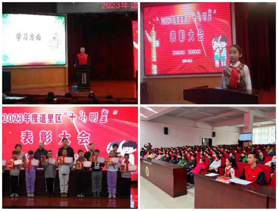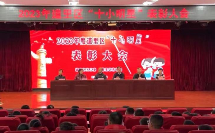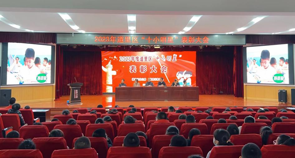 表彰会由王彬主持。会上,有100名中小学生获得道里区2023年“十小明星”光荣称号。大屏幕上首次播放的“十小明星电子相册”,向大家展示了百名十小明星在日常生活中的学习、锻炼和劳动的感人画面。以热爱祖国、志存高远为题演讲的经纬小学学生潘芊竹和靠钻研精神取得课本学习好成绩和自学电脑编程获奖第七中学学生孟菲阳的相继发言,深情表达了全体受表彰十小明星热爱生活、立志奋发学习向上的心声。区关工委常务副主任程联群做在年度总结中,简要回顾了针对疫情防控要求开展“争做健康小达人”,联系党史学习教育开展“争做红色宣传小达人”、“争做助人小雷锋”等有关情况。最后,区关工委常务主任张玉勇在讲话中,结合国内外形势深刻分析了开展包括争做十小明星活动在内的青少年教育活动的重要意义,并从进一步认清发展大势、提高政治站位、切实将此项活动纳入德育教育重要日程,因势利导、善于创新、不断增强活动实效,加强日常指导、强化有效评比、形成十小明星内生动力和良好外部环境等三个方面,提出了工作指导意见。