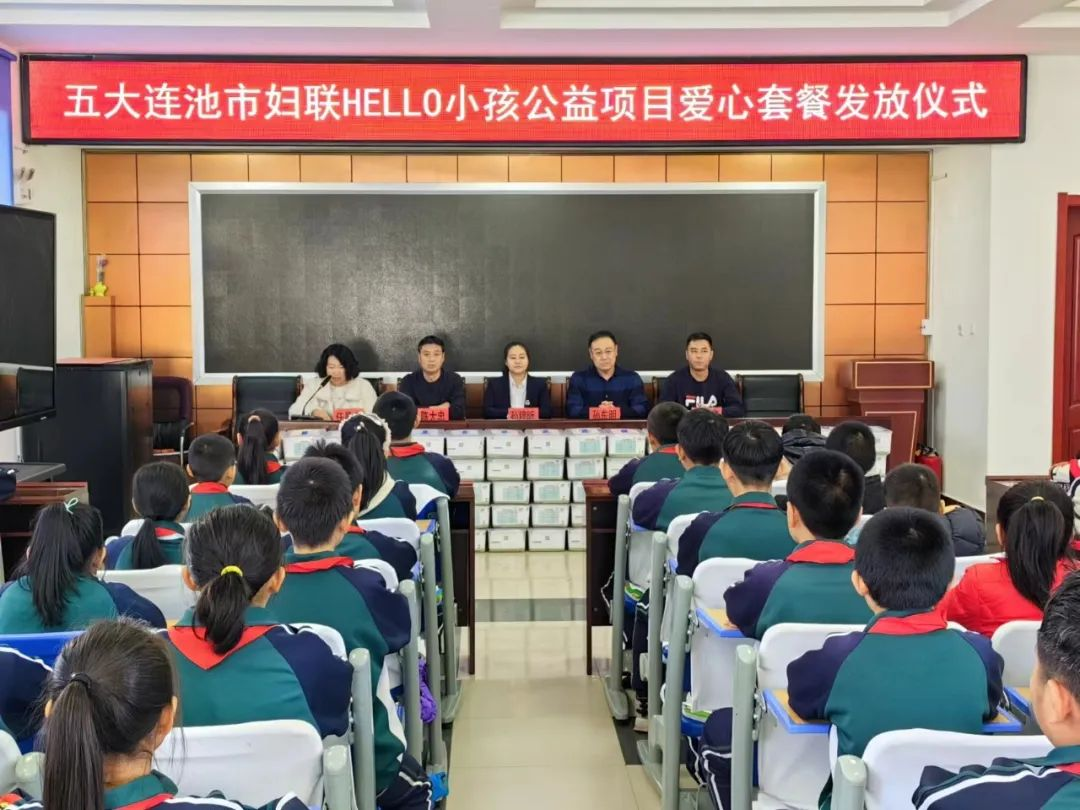 深入贯彻落实党的二十大精神和习近平总书记关于关心关爱困境、留守儿童的指示精神,12月1日,五大连池市妇联联合教育局关工委在第一小学校举办“HELLO小孩”公益项目爱心套餐发放仪式,为全市200名困境、留守儿童发放价值4万元的“HELLO小孩”公益项目爱心套餐。五大连池市实验小学、沾河雷锋小学校同步举办发放仪式。