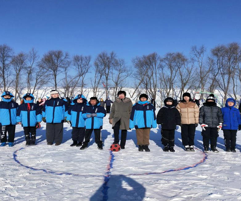 本次冰雪节分别从雪地足球、拉雪圈接力、抽冰尜、冰壶比赛等项目来考察学生的技巧、灵敏、速度、耐力等各方面的素质,一张张幸福的笑脸,一幅幅拼搏的画卷,无不彰显着孩子们对冰雪运动的坚定与热爱。在一片热烈的掌声中,秧歌舞拉开了冰雪节的帷幕。东安区教育局长张艳彬开球,人民小学与景福小学的队员们开始了雪地足球比赛。