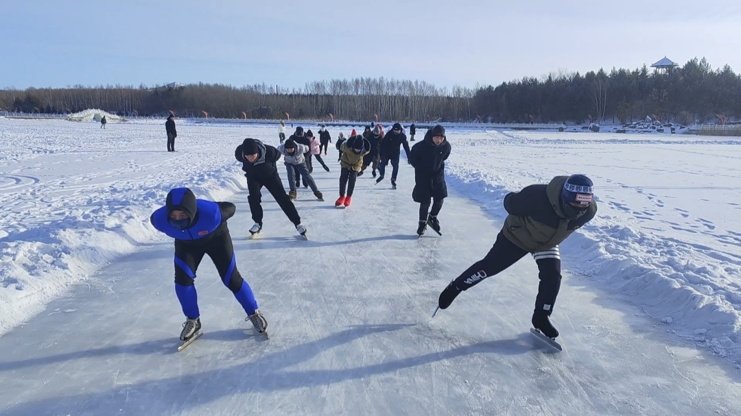 道路两旁背着冰鞋和护具,只露着“俩眼睛”的蒙面大军向水上公园冲去。明媚的阳光、透明的冰场、精彩的动作,冰场上你追我赶,尽情“舞”动,释放激情,时不时哼着小曲儿,体验脚下生风的快意畅然,冰晶的睫毛掩饰不住笑意和快乐。“小到5岁的小朋友,大到70岁的老人都是我们的队员,每到冬季队员们就齐聚冰面切磋技艺,享受滑冰带来的乐趣”滑冰爱好者张磊说。据了解,截止目前,“嫩北冰轮之家”现有队员60余人。