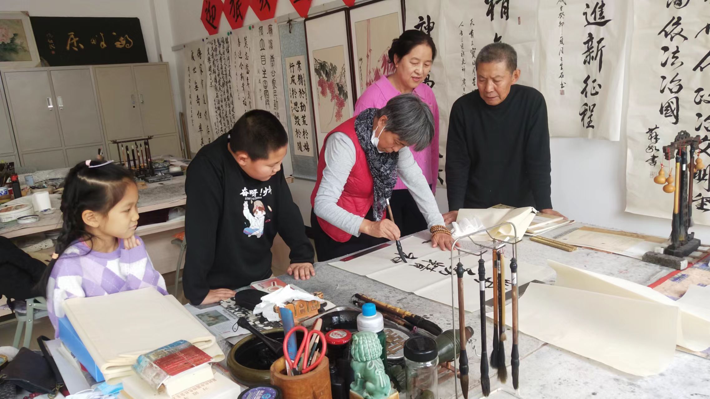 为把“关爱与传承”活动持之以恒地开展下去,大庆市红岗区八百垧街道铁人社区关工小组的“五老”志愿服务队的老同志们工作扎实,每天活跃在“关爱与传承”的第一线。社区关工小组针对关爱青少年工作的需要和每个人的特长,设置了革命传统教育、家庭教育、法治教育等多个志愿服务小分队,使每个老同志的优势和专长得以充分发挥。近日,革命传统教育小分队组织辖区青少年开展传统教育活动。“五老”耐心教授孩子们学习书法,在书写内容中学习什么是奋斗精神、勤俭节约精神、奉献精神等,在书法练习过程中培养出耐心细致、专注、坚持不懈的学习习惯,在书写技巧中感受中华文化的博大精深,孩子们还欣赏了老同志的一些优秀作品,在学习中感受到了书写的乐趣。