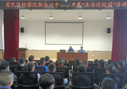 2024年1月9日,兴中小学关工委邀请到了法治副校长爱民区检察院第二检察部主任庄忠涛老师和于佳琪老师走进校园开展法治宣传教育活动。