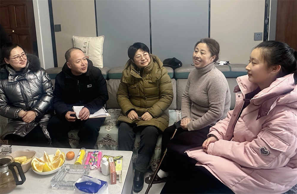 交谈中,苏玉新前辈还回忆起曾经工作中难忘的点滴故事,那时工作期间兢兢业业、勤勤恳恳,不计较个人得失,一心扑在工作上。回忆起那段艰苦岁月,苏玉新不禁红了眼眶,她说:那时候寒冬腊月,我们每个人心里都像燃了一团火一样干工作。她还寄语年轻教师,干工作要不怕吃苦,要有敢于战天斗地的精神,在那个年代,都没有翻不过去的雪山,现在的生活越来越好,更要为孩子们、为咱们的家乡贡献力量。在深入了解退休教师的生活近况后,校领导们反复叮嘱老前辈要保重身体,更欢迎老前辈有机会回学校看看。