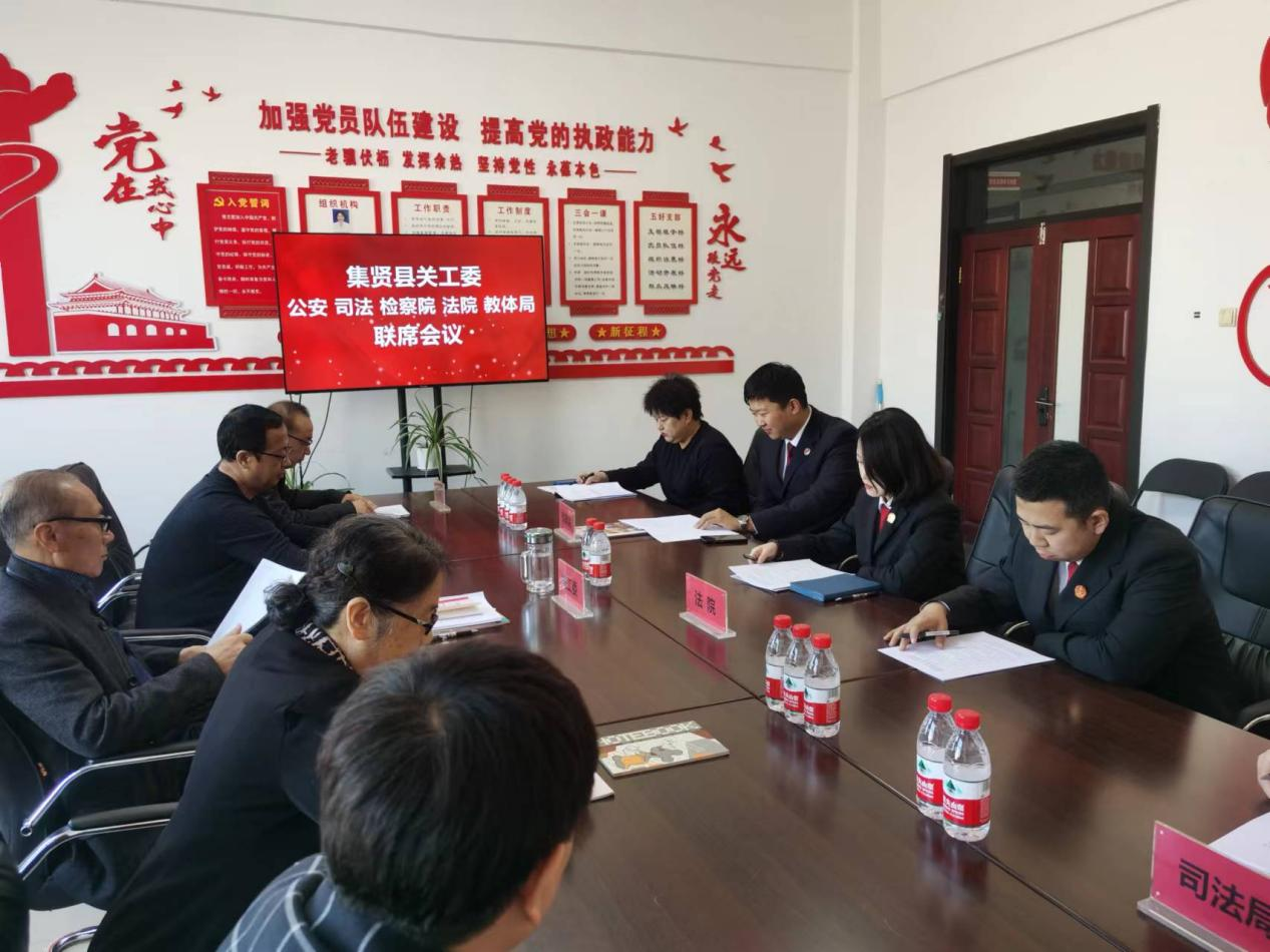集贤县公安局、司法局、检察院、法院、县教育和体育局高度重视集贤县关心下一代工作委员会联席会议,公安局派出政治部主要领导、司法局派出主管领导、检察院派出副检察长、法院派出庭长和助理、教育和体育局派出主管领导参加会议。