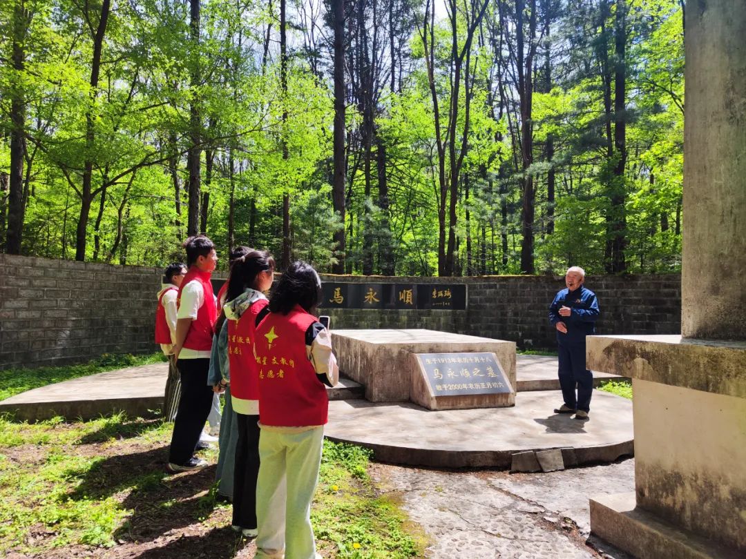 2024年5月18日,哈尔滨工业大学北极星支教团深入日月峡镇马永顺林开展以“领略英雄风采,传承林业精神,增强生态意识,探索自然奥秘”为主题的研学活动。铁力市日月峡镇关工委常务副主任、马永顺义务守墓人张道廷为同学们送上了一堂生动的林业文化传承课,课上不仅对林业知识进行了科普,带领同学们认识了樟子松、红松、暴马丁香等多个树种,还为同学们讲述了林业战线著名英雄马永顺同志的故事,讲述他从“伐木模范”到“育林英雄”的转变,讲述他这一生为新中国的发展,为林区绿色转型奉献的突出力量,同时还现场为同学们演唱了“林区号子”。通过张道廷老人的深情讲解,北极星支教团的同学们感受了到东北生态文化的独特魅力,感受到了“林区号子”的磅礴力量。同学们纷纷表示,将学习马老精神,做新时代中国高质量发展的奋斗者,用青春谱写使命担当!
