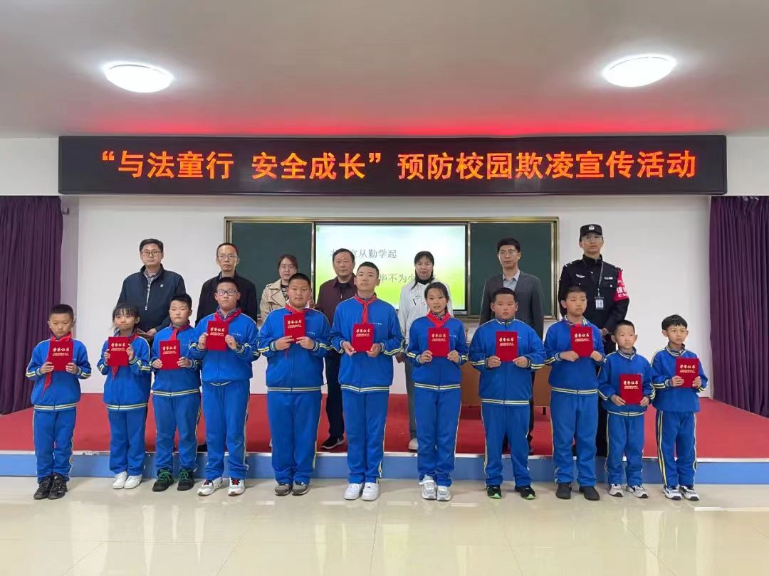 活动通过现场宣讲、互动问答、发放宣传资料等方式进行。首先由新飞律师事务所律师结合中小学生实际,从校园欺凌的法律定义、原因及危害方面入手,通过以案释法深入浅出地向同学们讲解《未成年人保护法》等法律知识,并就如何加强对违法犯罪的自我防范进行了正面教育和引导。宣讲结束后,工作人员为同学们颁发“校园安全小卫士”荣誉证书,并向所有参加宣传活动的师生们发放了《未成年人法律援助宣传手册》《未成年人保护法》《未成年人网络保护条例》等法律法规宣传资料600余份。同时向同学们发放文具100余份作为“儿童节”礼物,让他们在法律的庇护下茁壮成长。