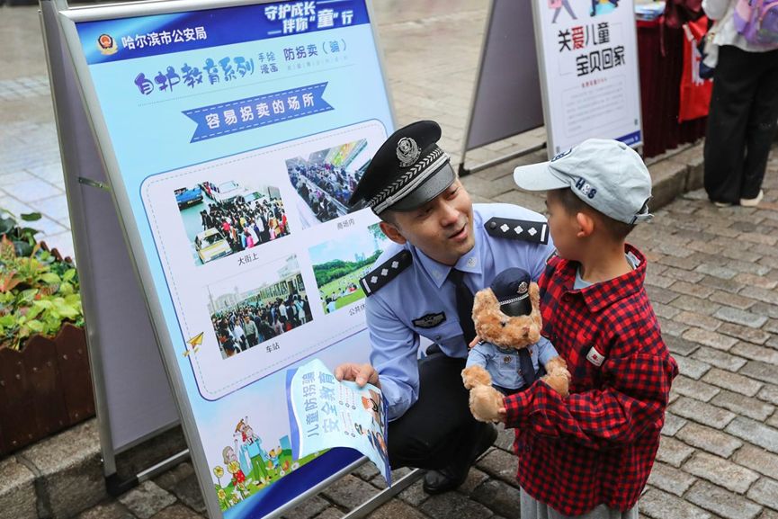 “小朋友,如果有陌生人递给你食物,你该怎么办?如果自己在家时,有陌生人敲门你该怎么办?”为进一步增强妇女儿童防拐卖、防性侵意识,切实提升自我保护能力,有效遏制被拐卖和被性侵案件的发生,构建平安和谐的社会环境,在第74个六一国际儿童节来临之际,哈尔滨市公安局组织开展“守护成长 伴你‘童’行”防拐防骗系列主题宣传活动,为祖国花朵筑牢安全防线。