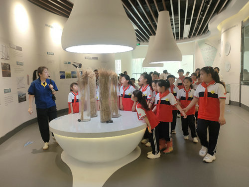 在恒丰企业馆,孩子们认真聆听讲解员的介绍,通过家乡造纸企业发展历程的产品实物、档案资料、设备模型等了解恒丰造纸70余年改革创新,成长为国际一流企业的发展历程。