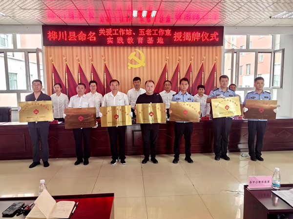 在授牌仪式上,县关工委常务副主任李洪军宣读了《关于命名桦川县关爱工作站(室)、五老工作室、实践教育基地的决定》,为县公安局、县司法局、县城南派出所、城北派出所授牌“关爱工作站”;为县人民法院授牌“关爱工作室”;为团结、长新社区授牌“五老工作室”;为桦川县远方农产品专业合作社授牌“实践教育基地”。