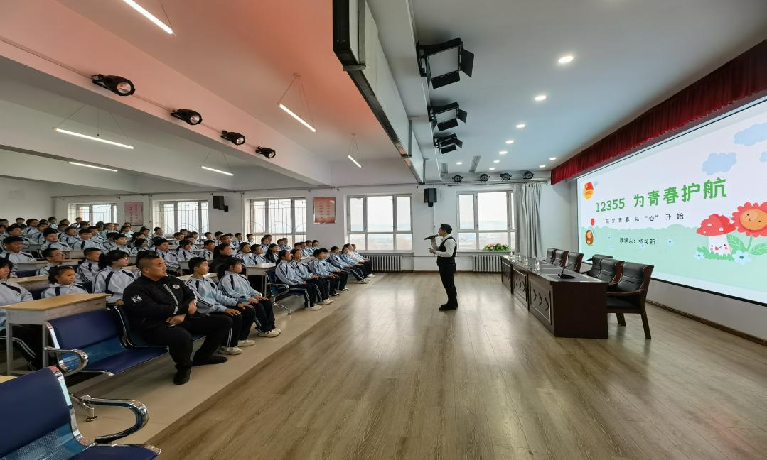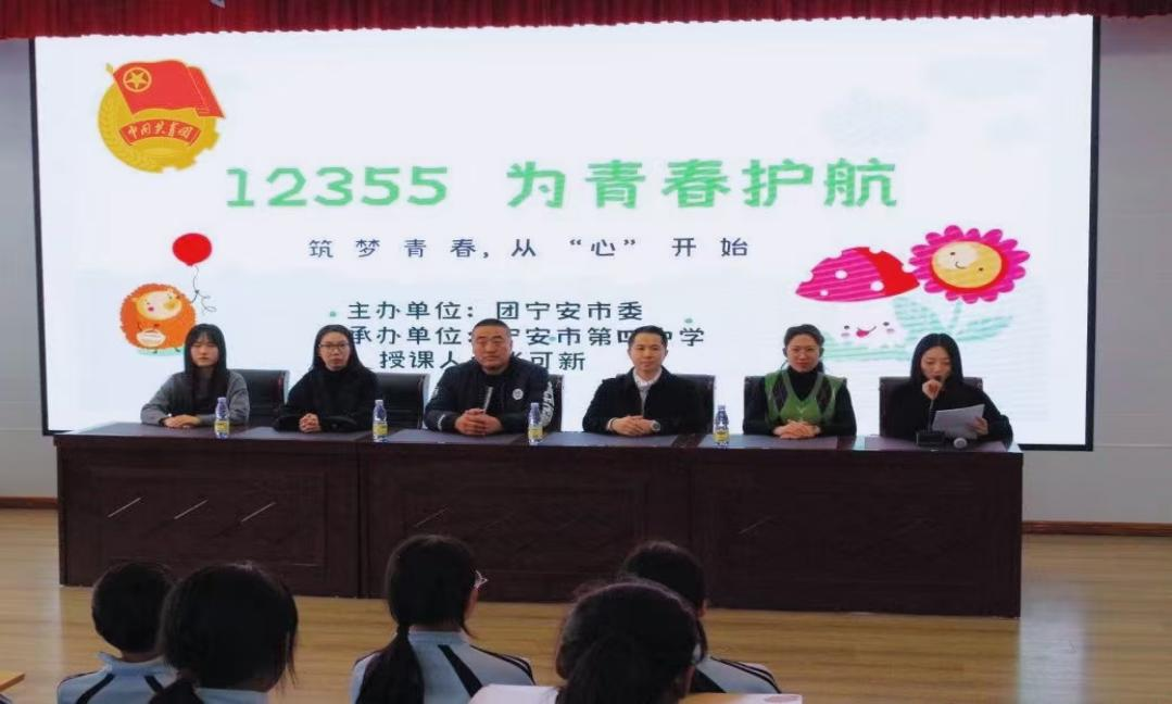 为进一步加强校园心理健康教育,提高学生心理健康素养和认知水平,增强学生自我调节能力,引导学生做自己情绪的主人, 11月11日,我校关工委联合团宁安市委开展了《“12355为青春护航”青少年心理健康讲座》。本次讲座由牡丹江市谭力心理学校校长,牡丹江市社会心理社会工作指导中心主任张可新老师主讲,参加活动的领导有宁安市第四中学德育副校长汪泉 、团宁安市委学少部长马卓然、团市委宣传部长李嘉欣、 团市委志工部干事郝旺欣,活动由校团委书记孙丹丹主持。