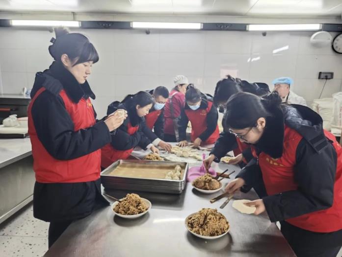 与此同时,厨房里也热闹非凡。一组擅长厨艺的志愿者正忙着包饺子。他们和面、擀皮、调馅、包饺子,动作娴熟而有序。不一会儿,一盘盘热气腾腾的饺子就出锅了。