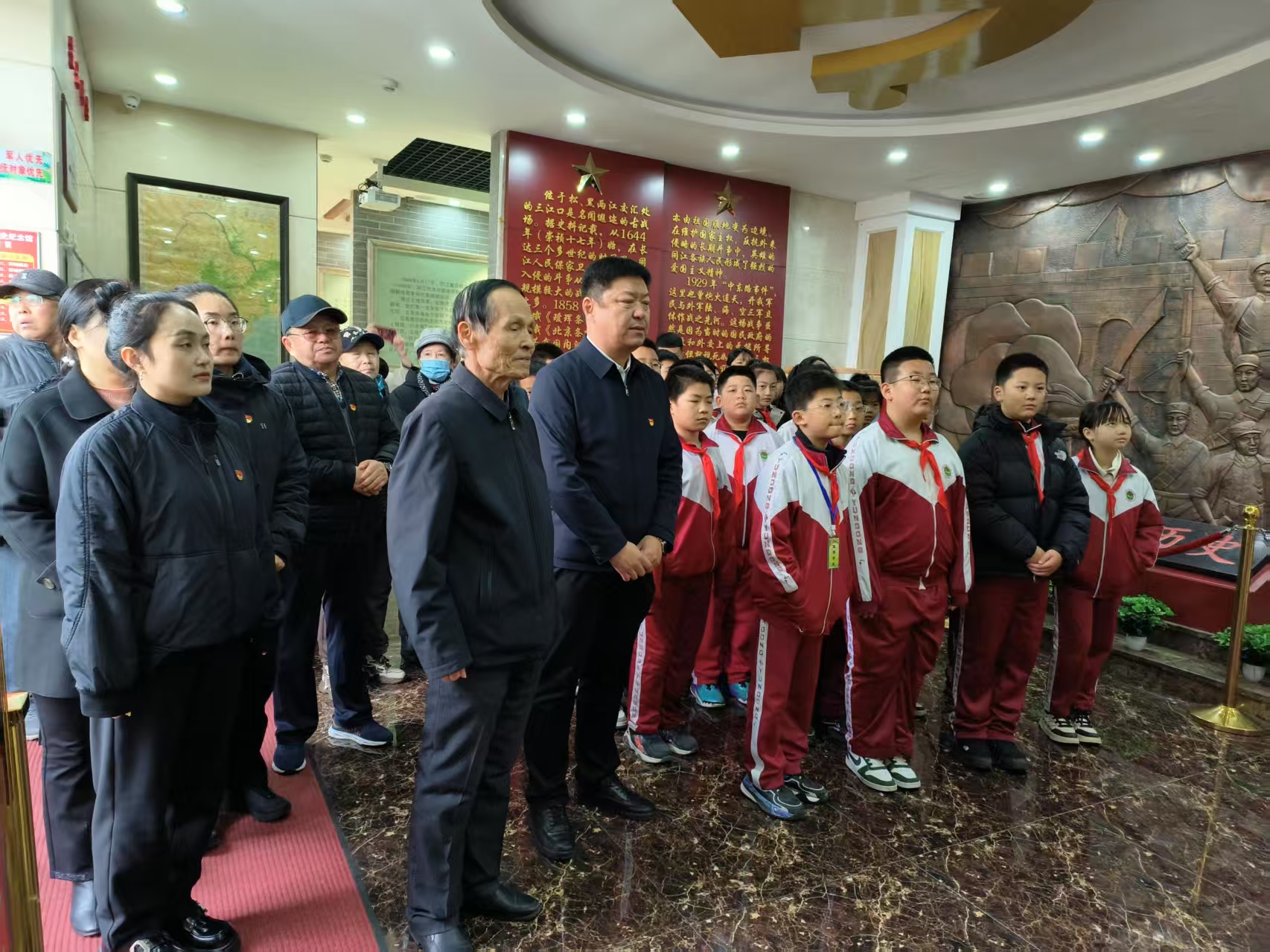 祭扫活动在肃穆的国歌声中开始,老干部、老党员与少先队员整齐列队,集体默哀致敬。随后,老同志和少先队员代表上前,将白纸花和花环敬献在烈士纪念碑上,并依次瞻仰烈士墓,让敬仰与追思在碑前蔓延,让红色精神在心底扎根。