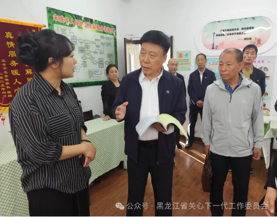 6月9日下午,调研组到达东宁市。在东宁市委常委、组织部部长兼关工委主任崔姝镜、市关工委常务主任吕英斌等陪同下,首先到绥阳镇柞木村,参观了村关工小组的“五老” 办公室等。对柞木村关工小组升级改造青少年活动室,精准关爱留守、困难儿童,“五老” 牵头成立合作社带动增收等工作,调研组给予充分肯定。