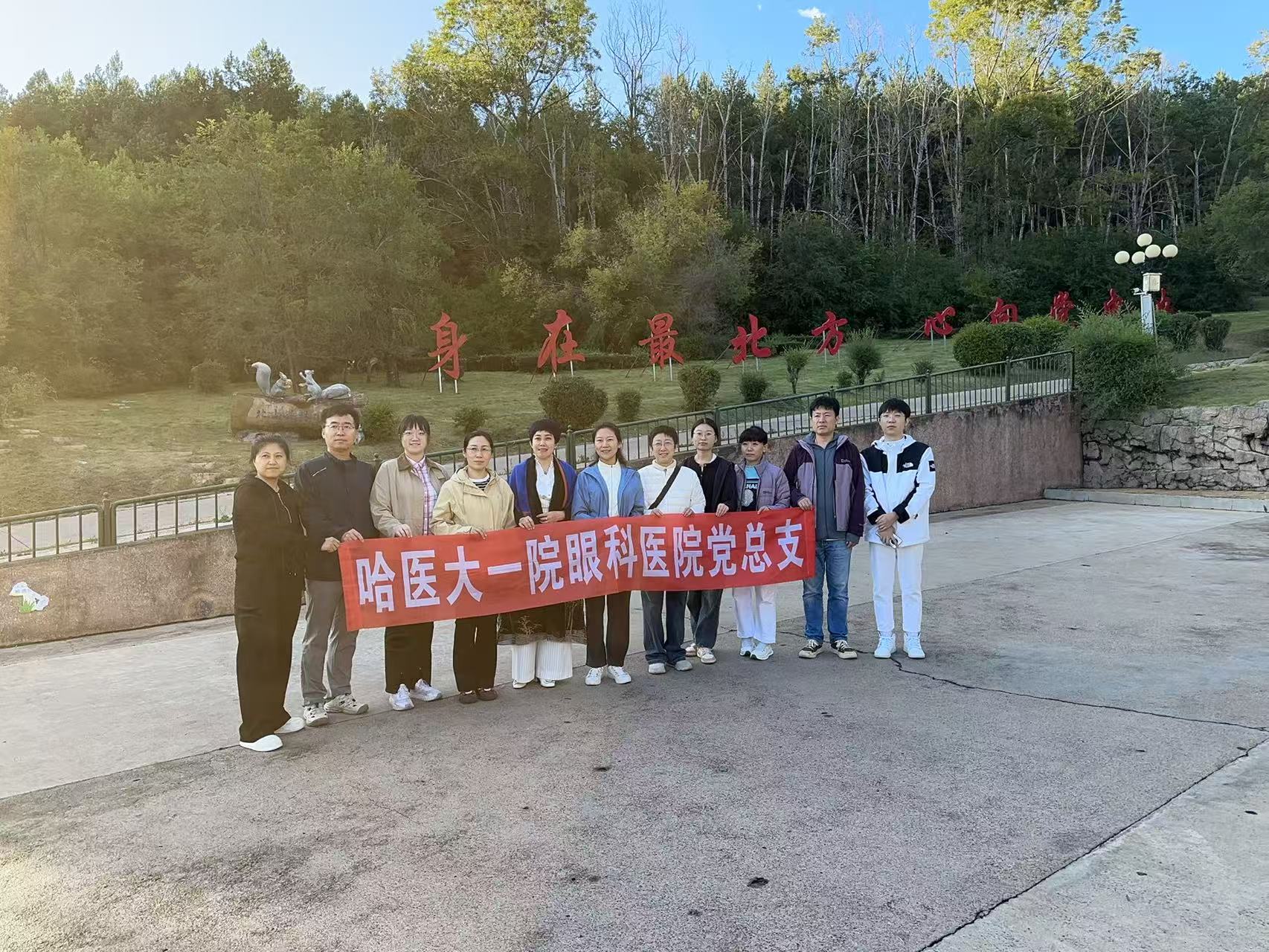 当天下午,作为医大一院眼科党总支书记张弘教授还带领一行人前往位于加格达奇区北山生态园内的铁道兵开发大兴安岭纪念碑进行参观与学习。他们向纪念碑敬献花束,表达对铁道兵先烈无限的崇敬,缅怀追忆铁道兵部队不畏艰险、顽强拼搏的开发建设历程。大家纷纷表示,要将这种精神力量融入日常医疗服务和近视防控工作中,以更强烈的责任感和使命感,积极践行“防未病”理念,守护好每一位儿童青少年的光明未