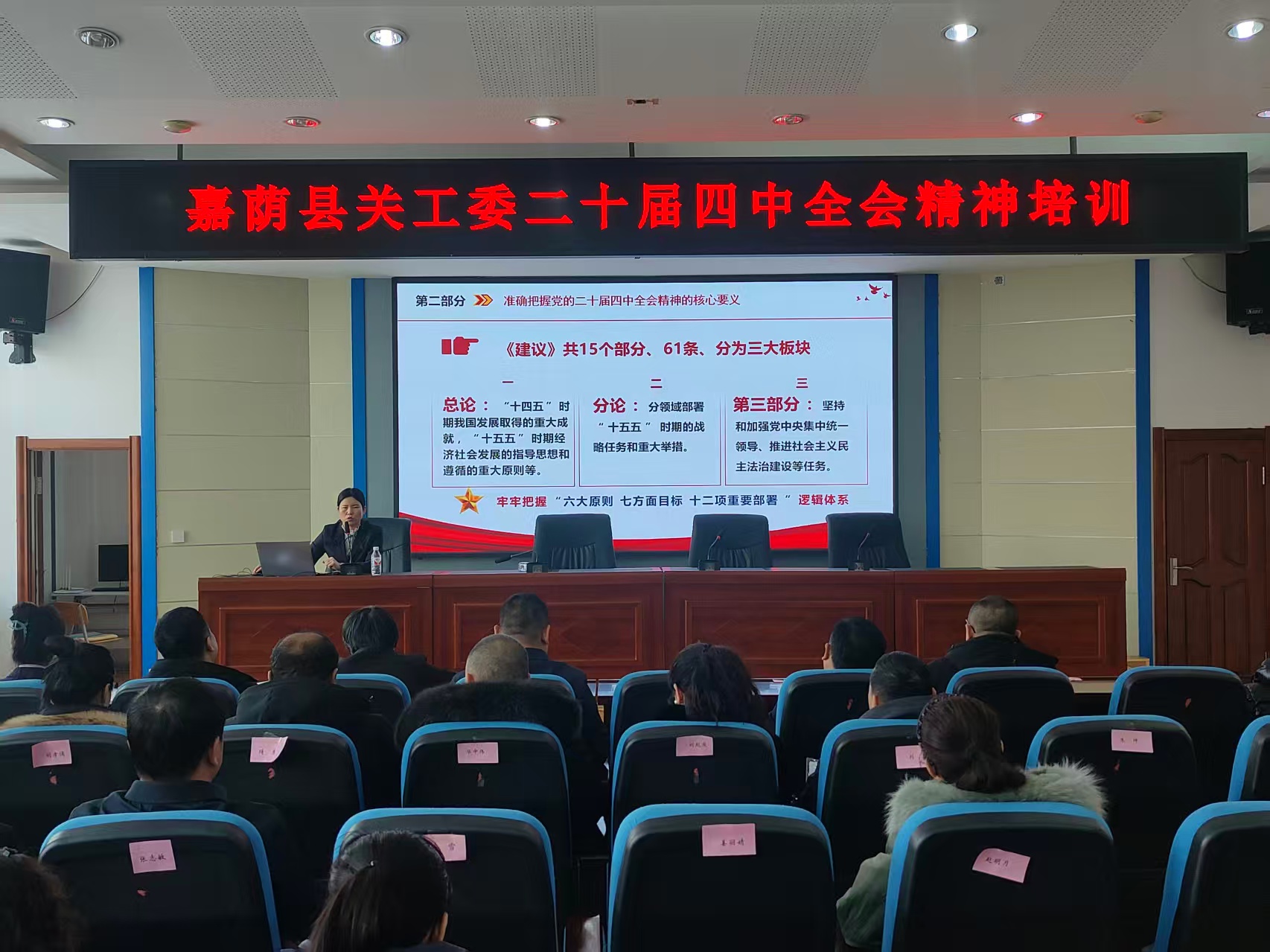 会议后半程进行了党的二十届四中全会精神专题培训讲座。特邀县委党校教师刘志春围绕全会核心要义、精神实质和实践要求,结合关心下一代工作进行系统讲解,引导全体参会人员把思想和行动统一到全会精神上来,切实将学习成果转化为推动工作的实际行动。